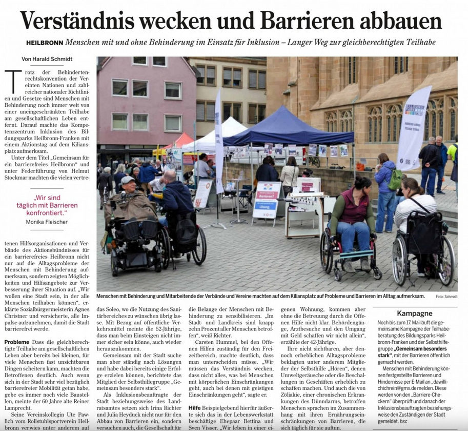 Heilbronn macht Zukunft barrierefrei - Aktionstag am 10. Mai 2025, Kiliansplatz Heilbronn